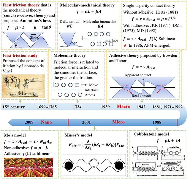 圖4.微觀尺度基于能量耗散摩擦物理模型的發(fā)展歷程。