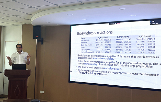 7月3日,塞爾維亞貝爾格萊德大學化學、技術和冶金研究所(ICTM)Marko Popovi?研究員應邀訪問中國科學院蘭州化學物理研究所,并作了題為“Chemical thermodynamics of biomolecules: Biothermodynamic analysis of biological synthesis of insulin and hemoglobin”的學術報告。