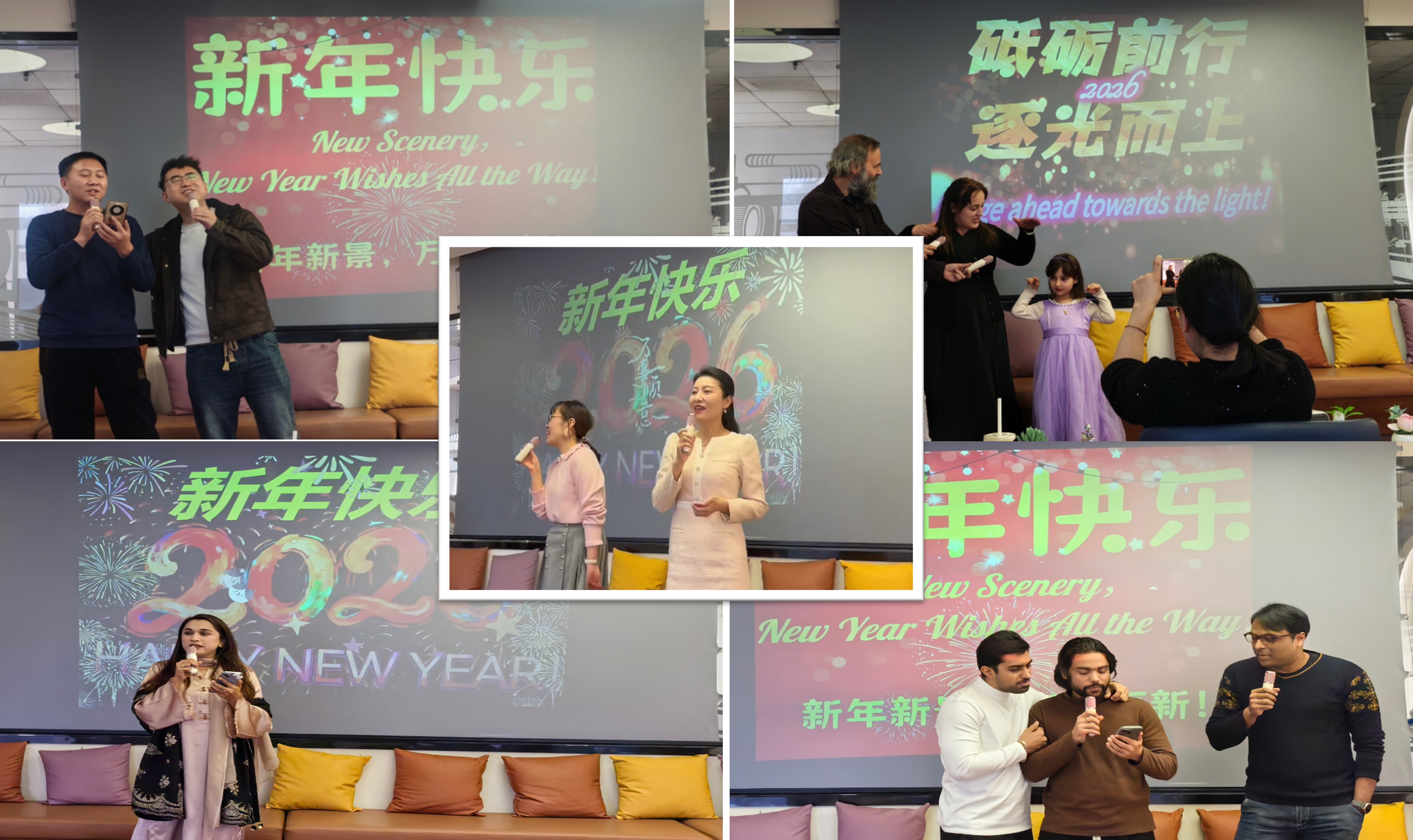 隨后的才藝表演環(huán)節(jié)精彩連連,各具特色,展現(xiàn)出豐富多彩的異域風(fēng)情?;顒右院铣?jīng)典歌曲《朋友》開場,歡快的旋律瞬間點燃了節(jié)日氛圍,引起大家情感的共鳴,傳遞了跨越文化的友誼;三名留學(xué)生博士用中文演唱《新年好》時, 傳遞的不僅是節(jié)日祝福,更是跨越時空的真誠融入;一首豪邁又不乏細(xì)膩、溫暖又治愈的《蘋果香》,悠長的旋律久久縈繞在大家的心間?,F(xiàn)場氣氛熱烈,嘉賓踴躍登場,有外籍員工全家攜手登臺演唱《小豬睡覺》為活動注入了暖意與童真;有外籍人員的家屬們紛紛上臺為大家?guī)碜约好褡搴图亦l(xiāng)的歌曲,歌聲宛如一道道橋梁,將遙遠(yuǎn)的故鄉(xiāng)與此刻的舞臺連接,生動詮釋了“此心安處是吾鄉(xiāng)”,展現(xiàn)了研究所大家庭包容、有愛的濃厚氛圍。